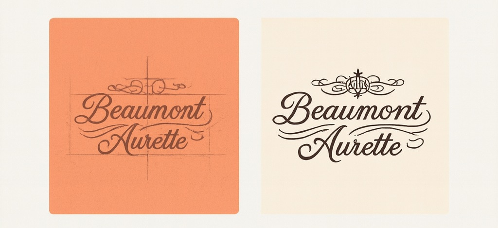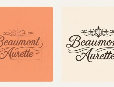 Initial explorations focused on typographical elegance--experimenting with high-contrast calligraphic scripts and serif combinations. The goal was to find a rhythm between flourish and legibility